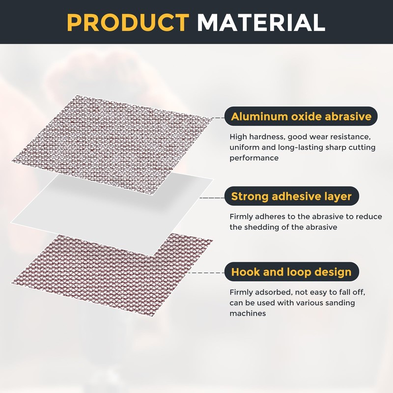 Selected Material: The surface is coated with aluminum oxide abrasive, while the back uses high-strength polyester fiber. Compared with traditional sandpaper, it provides sharper grinding efficiency, enhanced durability, and prevents wall damage or scratches. Suitable for both dry and wet grinding