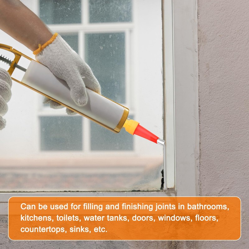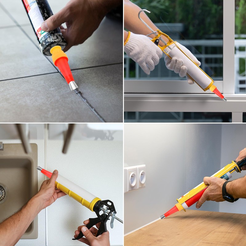 - Application - Suitable for sausage style gun or tubes with threaded ends, not suitable for typical DIY cartridge gun. The reusable sealant finishing tools can be used for filling and trimming joints in bathrooms, kitchens, toilets, water tanks, doors, windows, floors, countertops, sinks, etc. Fit for structural glue, glass glue and beauty glue.