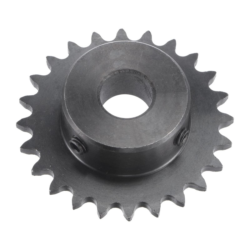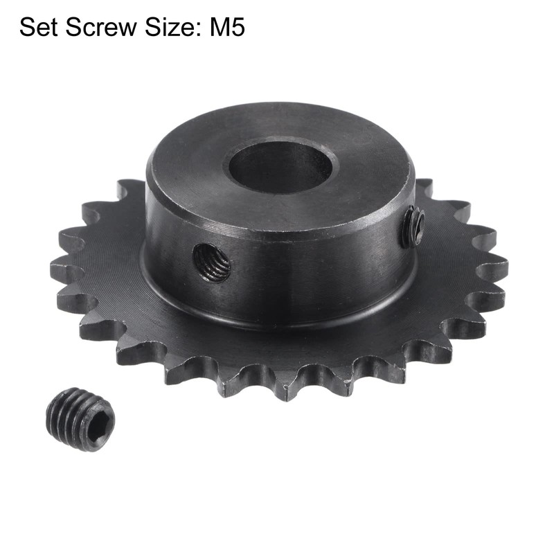 sourcing map 24 Tooth Roller Sprocket B Type, #25 Chain, Single Strand 1/4" Pitch, 12mm Bore Black Oxide C45 Carbon Steel with Set Screws for ISO 04C