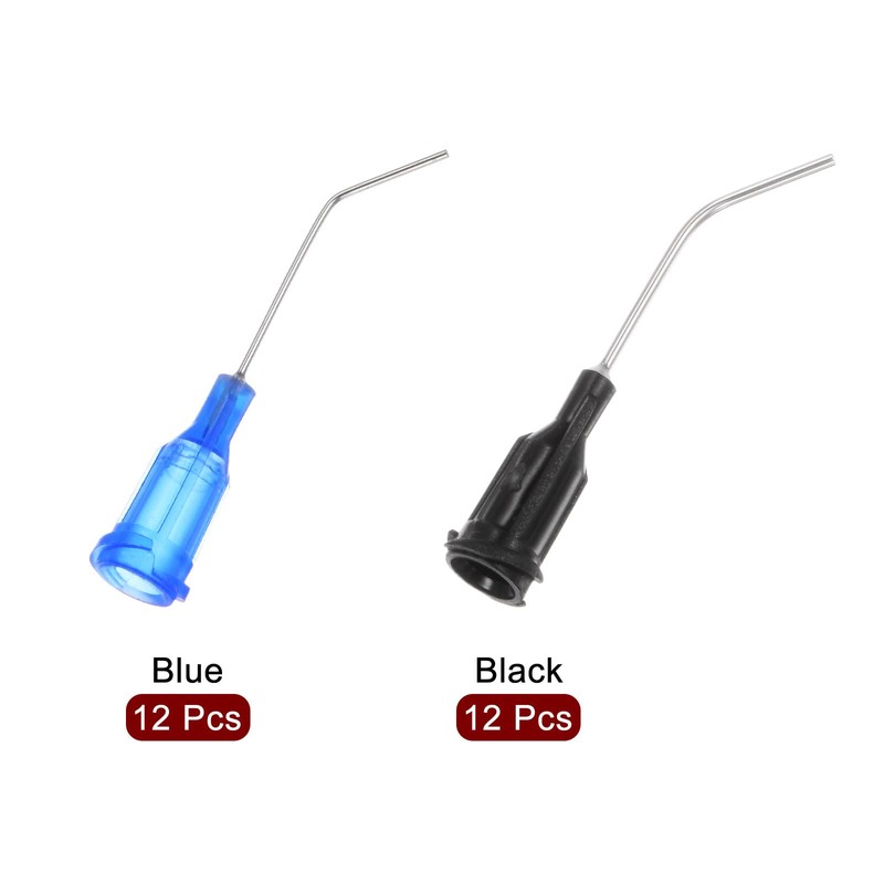 sourcing map 24pcs Blunt Tip Dispensing Needles 19G 22G 45 Degrees Bent Dispensing Tips 1" End Angled Dispenser Needle with Luer Elbow Blunt Needle for Oil or Glue Applicator, Black, Blue