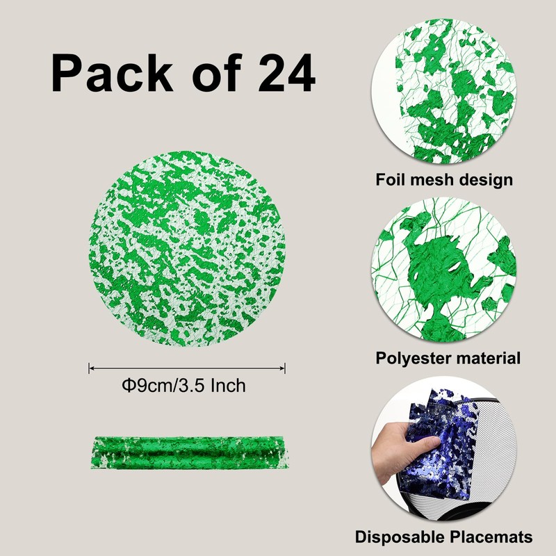 sourcing map 24pcs Disposable Placemats, 3.5 Inch Foil Metallic Place Mats Mesh Pressed Table Doilies, Table Centerpiece Decor for Wedding Party, Green