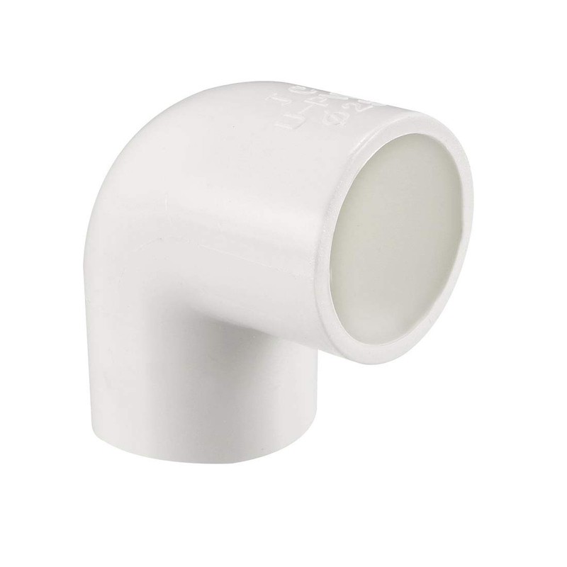 - 90-Degree elbow for connecting two pipes at an angle. The PVC connector can change direction in a pipe and connect two pipes of the same type and diameter size