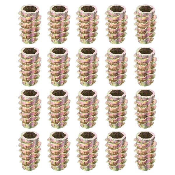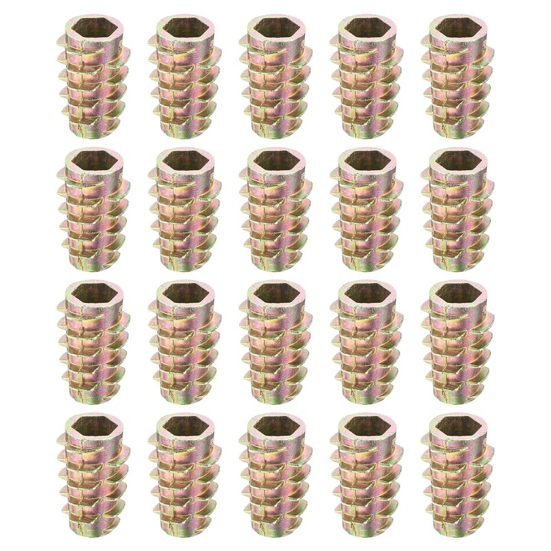 sourcing map 25Pcs Hex Threaded Inserts, M6-1x18 Zinc Alloy Hex-Flush Thread Insert, Furniture Threaded Insert Nuts, Hex Socket Drive Threaded Insert Bolt for Wood Furniture Assortment
