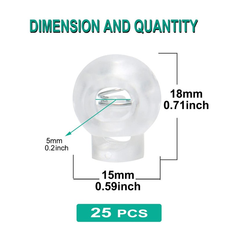 - PACKAGE INCLUDES - Package Included: 25 x Cord Locks; Cord Hole Size: 5 x 3.5mm/0.2" x 0.14"(L*W) ; Total Size: 18 x 15 x 12mm/0.71" x 0.59" x 0.47"(L*W*H); Great for craft usage, can meet your needs for DIY
