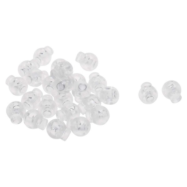 sourcing map 25pcs Plastic Cord Lock Stopper End Spring Stop Toggle Fastener Stopper Rope End for Drawstring Clothing, Shoelace, Bag, Camping Clear