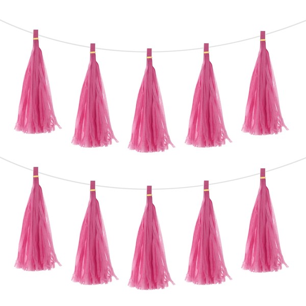 sourcing map 25Pcs Rose Red Tassel Garland Banner with Rope Tissue Paper Tassels Party DIY Kits for Anniversary Wedding Birthday Party