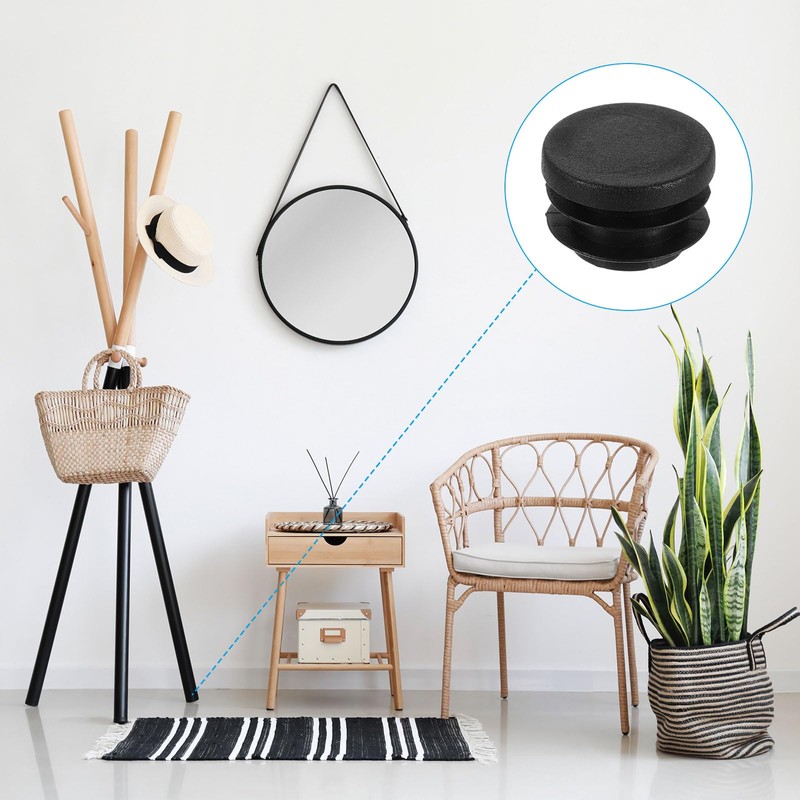 Protection and Anti-slip: The round black plastic plug prevents chair feet, table feet, stool feet, etc. from scratching the wood floor, thus avoiding scratches, and increases the static friction of chairs and tables, preventing furniture from sliding and being damaged.