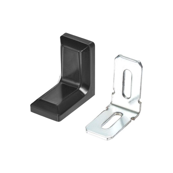 sourcing map 28x18mm Cabinet Cupboard Shelf Corner Brace Plate Right Angle Bracket Black 10pcs