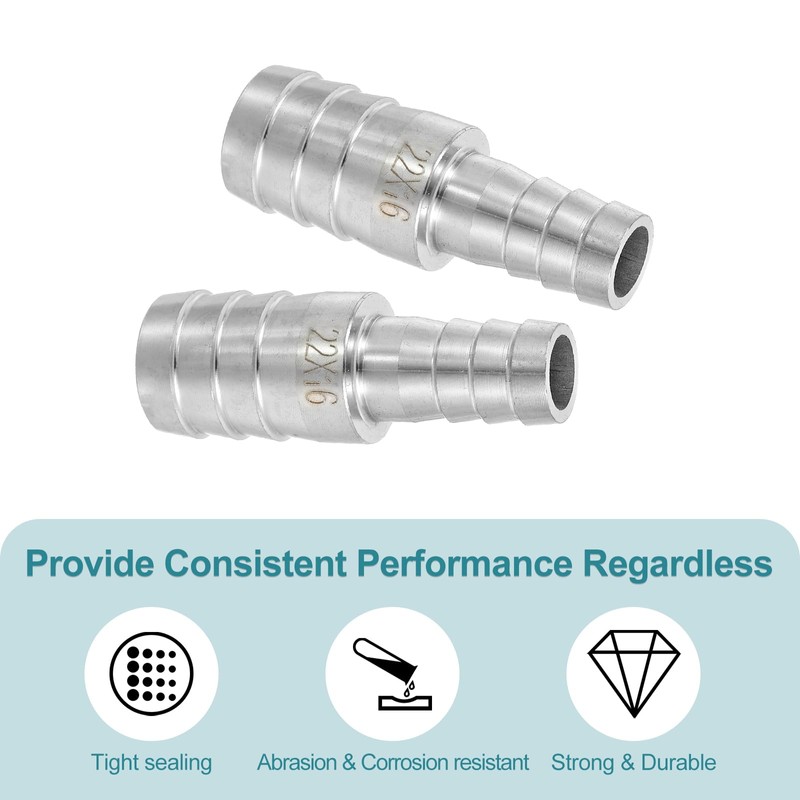 sourcing map 2Pcs 7/8" to 5/8" Hose Barb Reducer Pipe Fitting, 304 Stainless Steel Hose Pipe Fitting Sanitary Adapter for Vacuum Systems, Industrial Pipe Connections, Silver