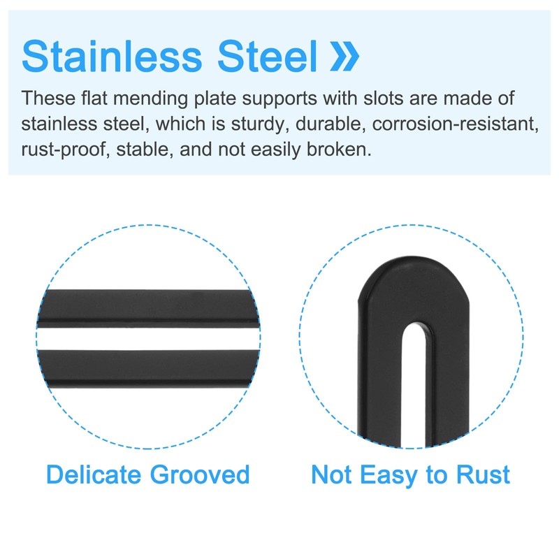 - [MATERIALS]: These flat mending plate supports with slots are made of stainless steel, which is sturdy, durable, corrosion-resistant, rust-proof, stable, and not easily broken. They are crafted with exquisite craftsmanship, moisture-proof, and rust-resistant, and will not damage the surface of the home. They can be used for a longer period.