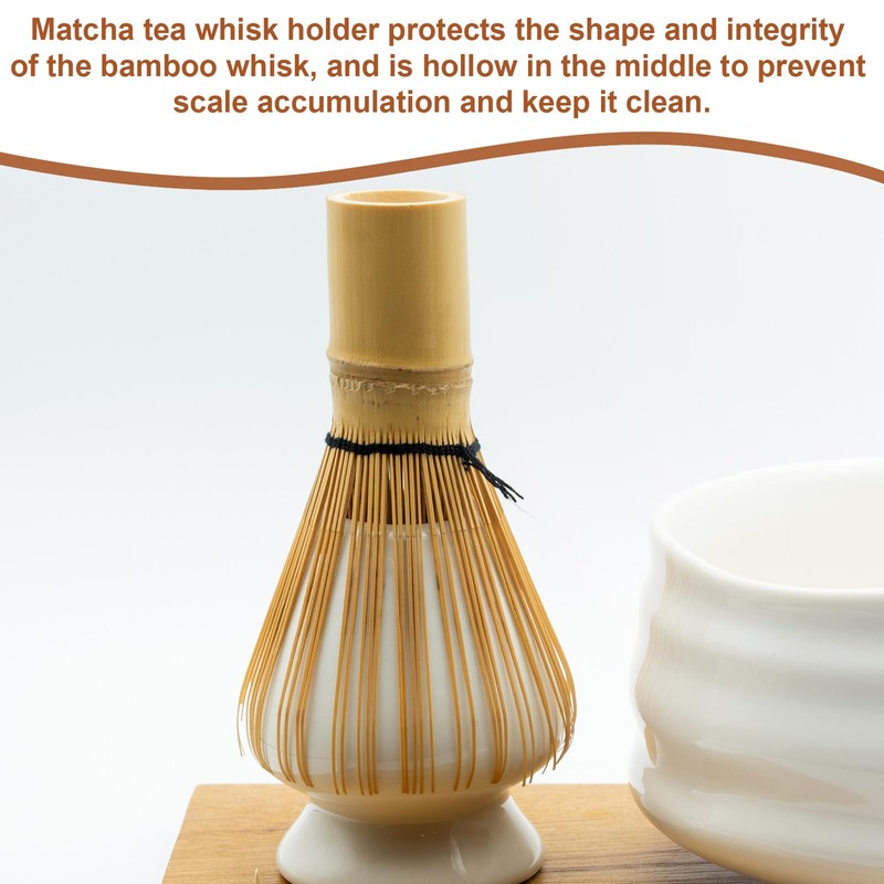 - Feature - The matcha tea whisk holder protects the shape and integrity of the bamboo whisk without worrying about its bristles bending. The middle is hollow, which helps the drying process and prevents scale accumulation.