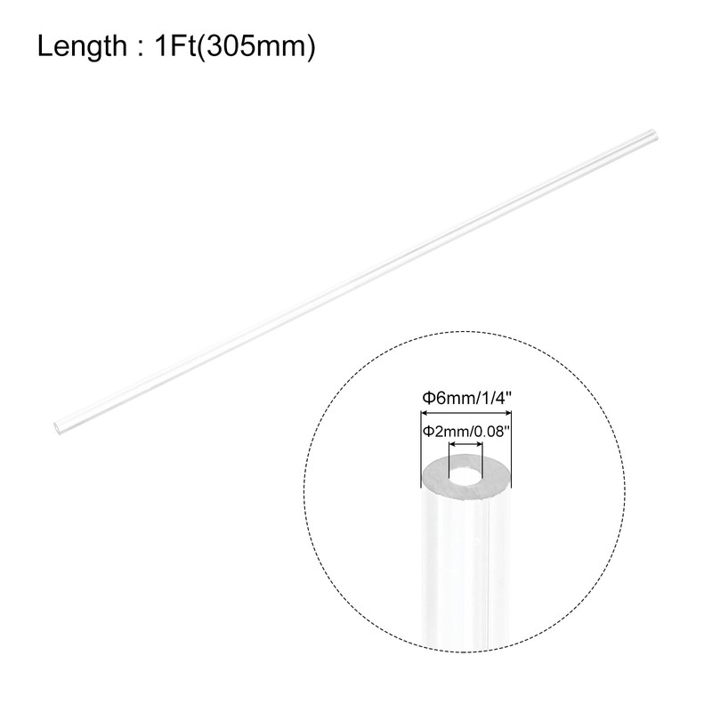 - Feature: 2pcs 0.08 inch(2mm) ID x 1/4 inch(6mm) OD, 1Ft(305mm) Length, Clear Rigid Tubing is sturdy and durable, it has good electrical insulation, good tensile and compressive strength.