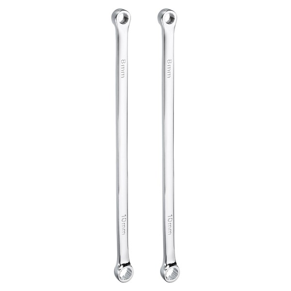 sourcing map 2pcs Double End Box Wrench 8 x 10 mm Metric 12 Point 0 Degree Offset Extra Long Double End Box Ratcheting Wrench Carbon Steel Polished Long Spanner Tools for Repairs