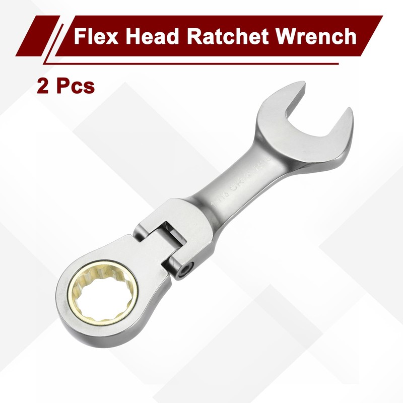 sourcing map 2pcs Flex Head Ratchet Wrench Spanner 11/16" SAE Ratcheting Combination Wrench 72-Teeth Chrome Vanadium Steel Ratchet Gear Spanners with 12 Point Box End for Auto Repairs