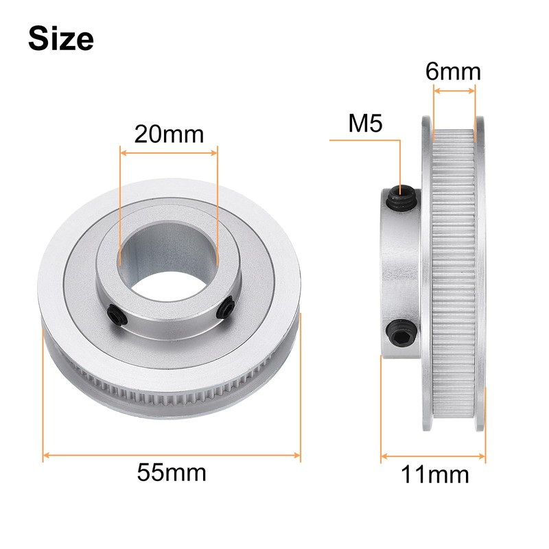 Timing Belt Pulley Dimension: 20x55x11mm (Inner Dia*Outer Dia*Thickness)