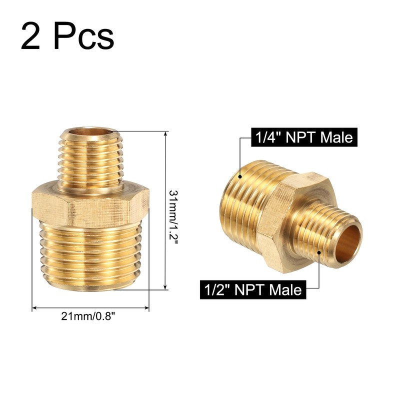 - SIZE CHECK - Brass Thread Hex Nipple, 1/4 NPT Male x 1/2 NPT Male pipe fitting connector thread brass pipe fitting adapter for connecting two NPT female threaded pipes.