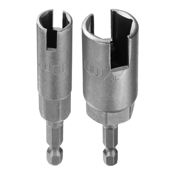 sourcing map 2pcs Hex Nut Driver Drill Bit Set 10mm 17mm 6-Points Socket 1/4" Hex Shank Nut Setter CR-V Steel Quick-Change Nut for Power Drills Impact Drivers