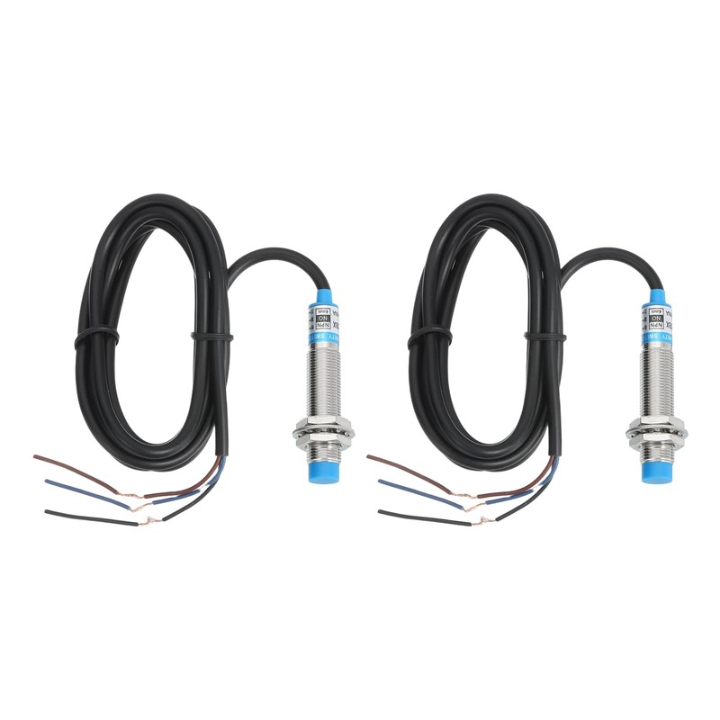 - Inductive proximity sensor features a blue sensor head with a 4mm (0.16 inch) detection distance. It is of non-embedded style, equipped with a 3-wire setup including a 1.2m (4 ft) black wire and a thread diameter of M12. The sensor has an output current of 300mA and operates on an NPN NO output type at a rated voltage of 6-36V. The package includes 2pcs proximity switch.
