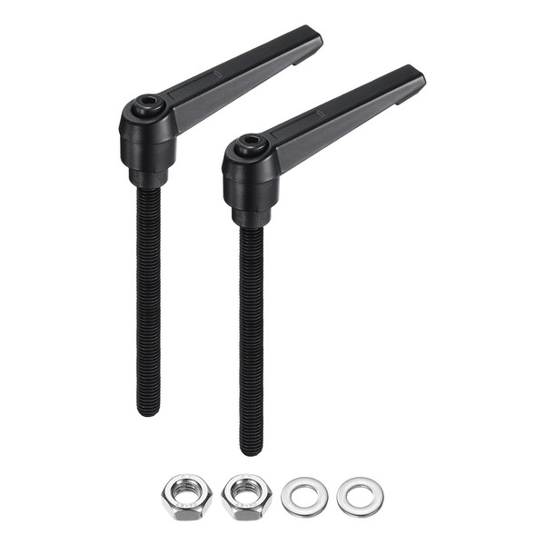 sourcing map 2pcs Lever Adjustable Handles M8 x 80mm Metric Male Thread with Nuts Washers, Level Clamping Handle Set Hand Stud Knobs Rotating Screw Handles Bolts with Locking Lever, Black