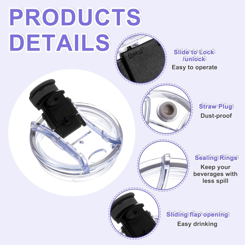 - [MATERIAL]: The flip spill stopper lid is made of plastic, which is not easy to break, spill-proof and leak-proof, easy to clean, can be directly in contact with food or drinks, and can serve as a protective cover for the cup for a long time