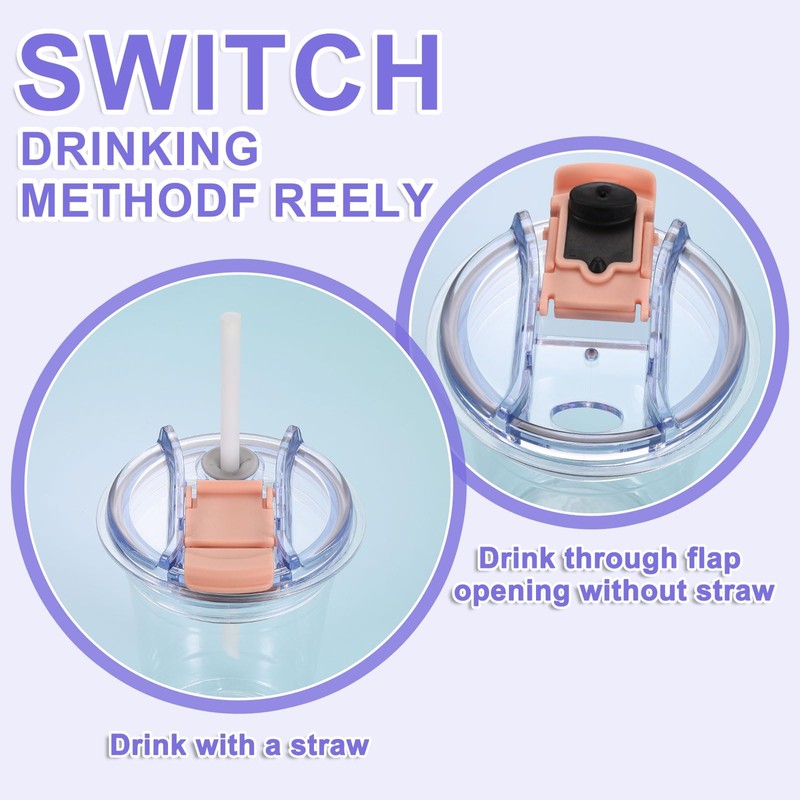- [TWO DRINKING METHODS]: The dual-function drinking mouth design of the straw lid replacement allows you to drink with a straw or directly flip the lid to drink, and you can switch the drinking method freely