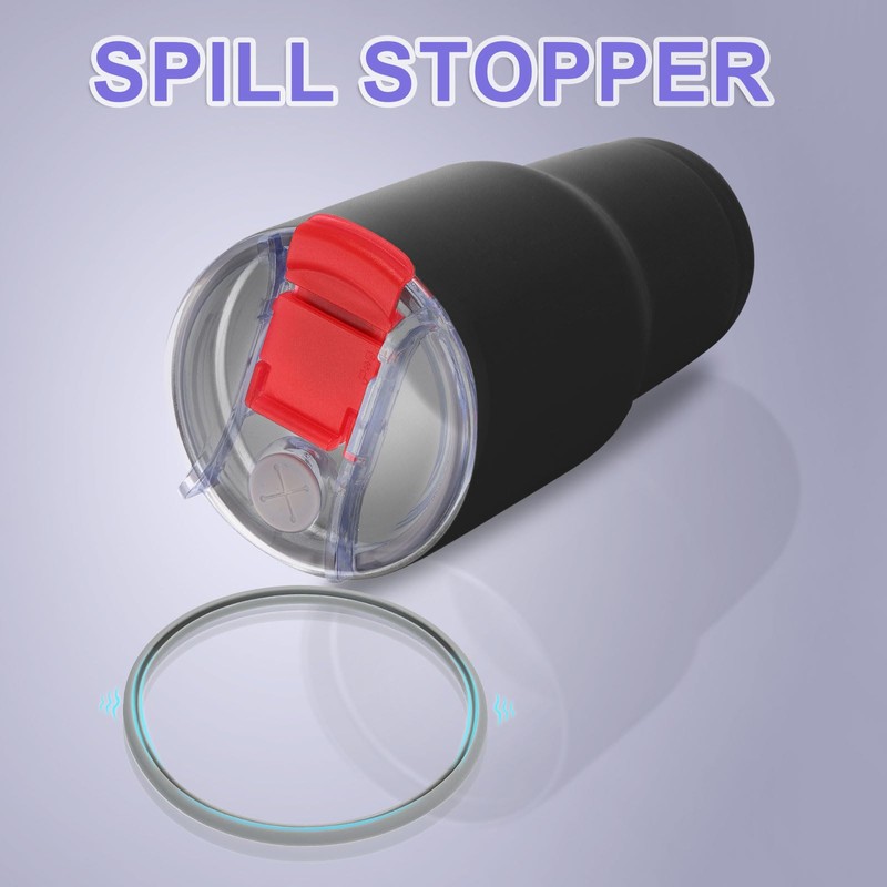 - [SPILL STOPPER & DUST PROOF]: The rubber ring around the lid and the rubber layer inside the flip cover can fit tightly to the cup edge and lock in place, effectively preventing spills and achieving a good sealing effect so that your drink can maintain a constant temperature for a long time. The lid straw port features a dust plug design, easily inserting a straw to drink while keeping the drink clean