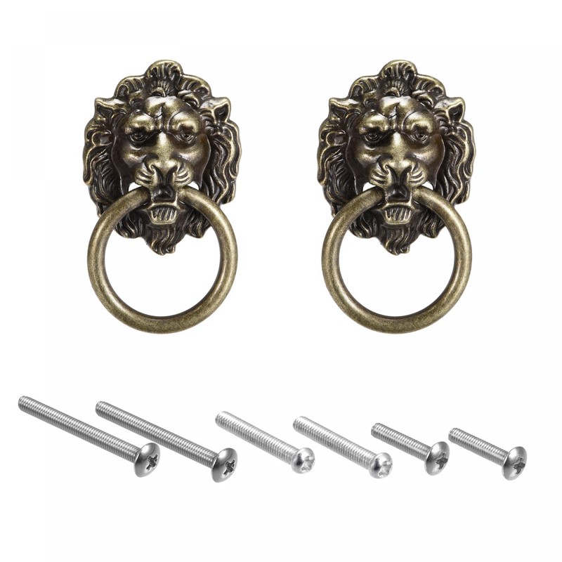sourcing map 2Pcs Lion Head Pulls Knob 1.57" x 2.68" Bronze Lion Head Drawer Pulls Ring Pull for Cupboard Suitcase Furniture Replacement with Mounting Screws