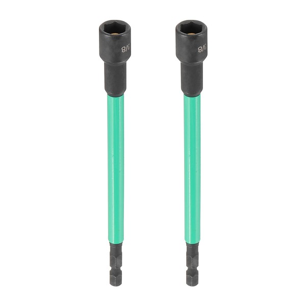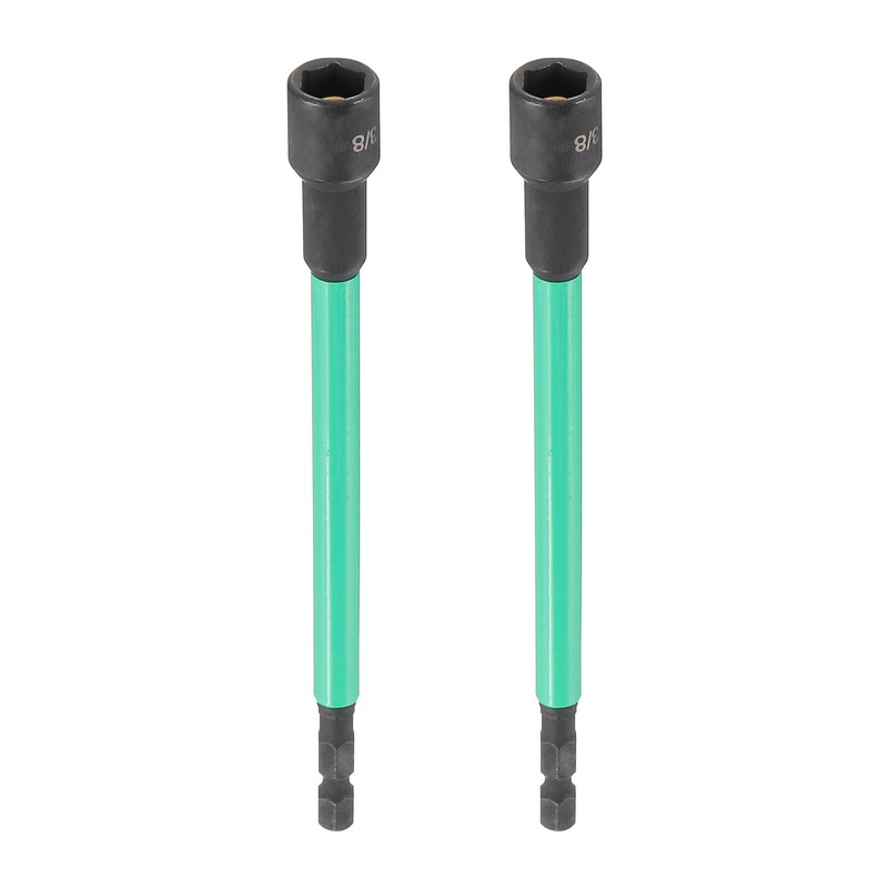 sourcing map 2pcs Nut Driver Drill Bit 3/8 Inch Socket 1/4" Hex Shank 6" (150mm) Extra Long Magnetic 6-Point Sockets Quick Change CR-V Steel Bolt Setters for Power Drill Drivers