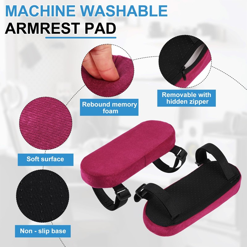 Easy to Install & Clean: Our armrest pad is designed with adjustable nylon fastener straps, which make installation and removal easy and fast. The non-slip backing enhances stability, ensuring that each pad stays securely in place on your chair's armrests. The hidden zipper makes the polyester cover detachable for easy cleaning and machine washing.