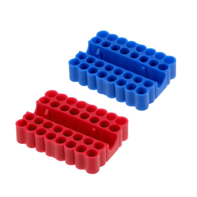 sourcing map 2pcs Plastic Hex Shank Screwdriver Bit Holder Organizer 32 Holes 1/4 Inch Plastic Drill Bits Storage Case for Any 1/4" Hex Shank Metal Driver Bits Use, Red Blue