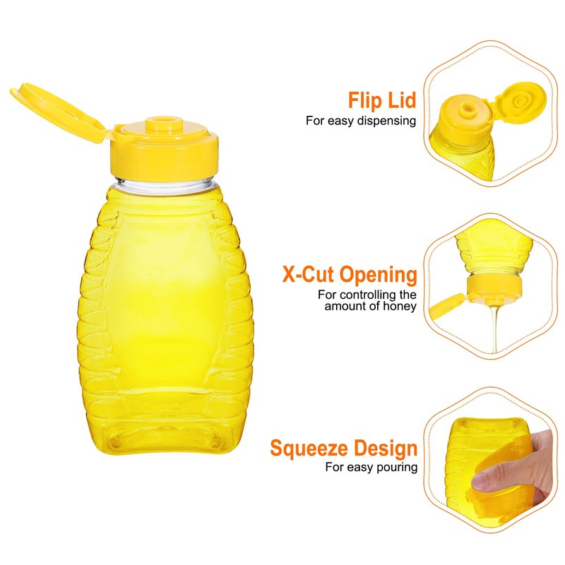 - Material - The cap of the empty honey container is made of PP material and the bottle body is made of PET material, which is durable, safe, washable and reusable. The transparent plastic helps you confirm the amount of honey you need and is also convenient for timely filling.