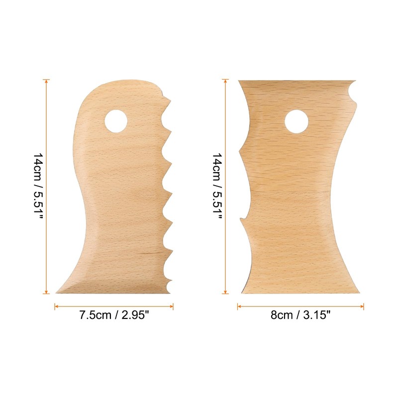 sourcing map 2pcs Pottery Ribs Trimming Tools Beech Pottery Profile Big Wave Design Shaping Texture Rib Beech Wood for Carving Ceramics Clay