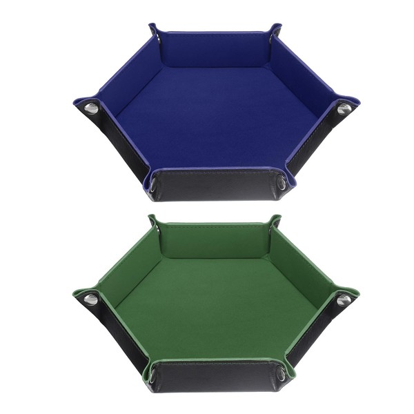 sourcing map 2pcs PU Leather Dice Tray Unisex Valet Tray Folding Hexagon Tray Portable Entryway Table Nightstand Bedside Desk Holder for Key Wallet Watch Coin Jewelry, Olive Green Dark Blue