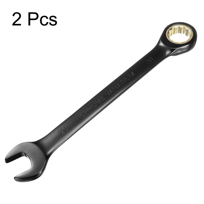 sourcing map 2Pcs Ratcheting Spanner 20mm Metric Open End Wrench 72-Teeth CR-V Steel 12 Point Nickel Plated Combination Ratchet Wrench for Fasteners Nut Bolt