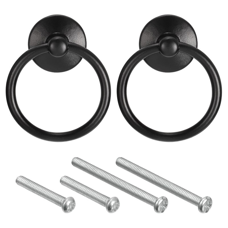 sourcing map 2Pcs Round Ring Pulls, Drawers Knobs Black Circle Drawer Handles...