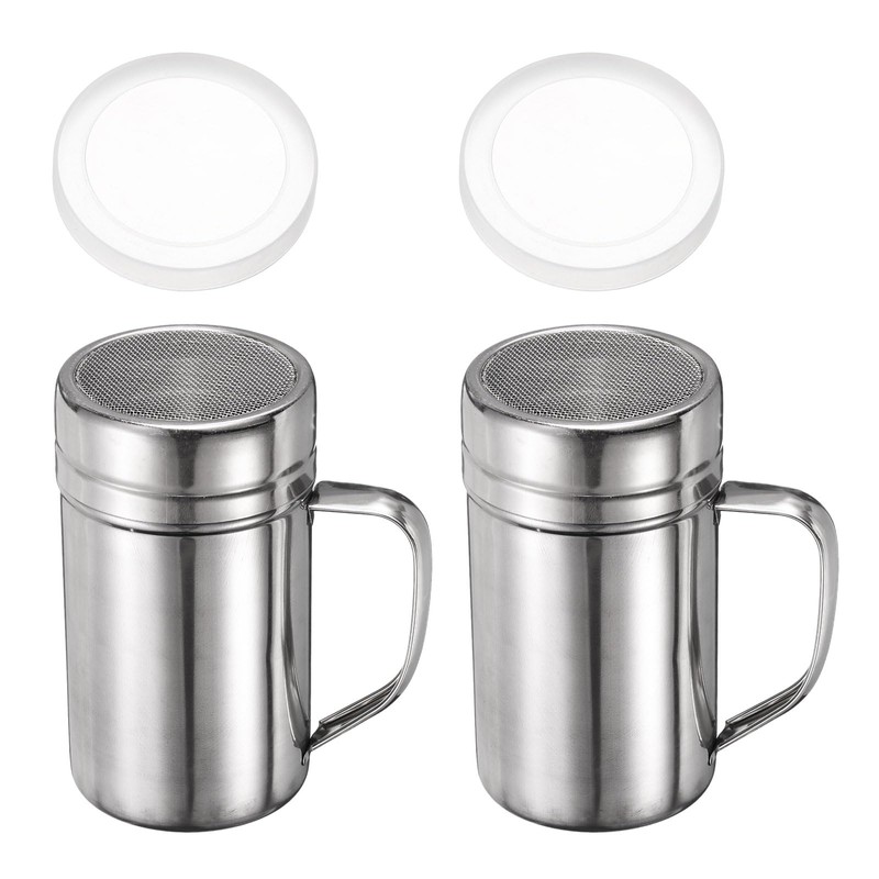 sourcing map 2pcs Salt Dredge Shakers 14 Ounce Stainless Steel Spice Shakers with Handle and Lid for Salt Sugar Flour