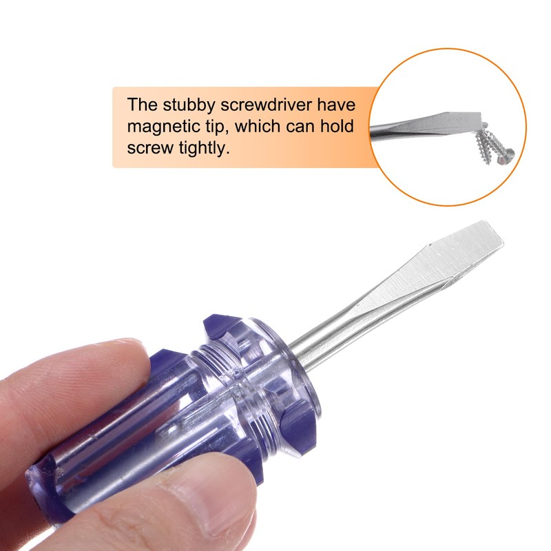 sourcing map 2pcs SL6 Short Tip Slotted Screwdriver Stubby Magnetic Flat Head Screwdrivers CR-V Small Pocket Screwdriver for DIY Repairing, Blue