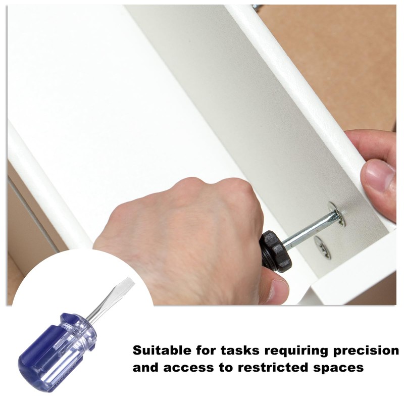 - Size - This short screwdriver type: Flat Head; Size: SL6; Overall length: 87mm; Handle length: 48mm; The short size makes it very easy to use and suitable for work in all tight spaces.