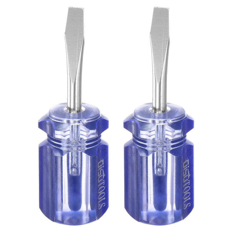 sourcing map 2pcs SL6 Short Tip Slotted Screwdriver Stubby Magnetic Flat Head Screwdrivers CR-V Small Pocket Screwdriver for DIY Repairing, Blue