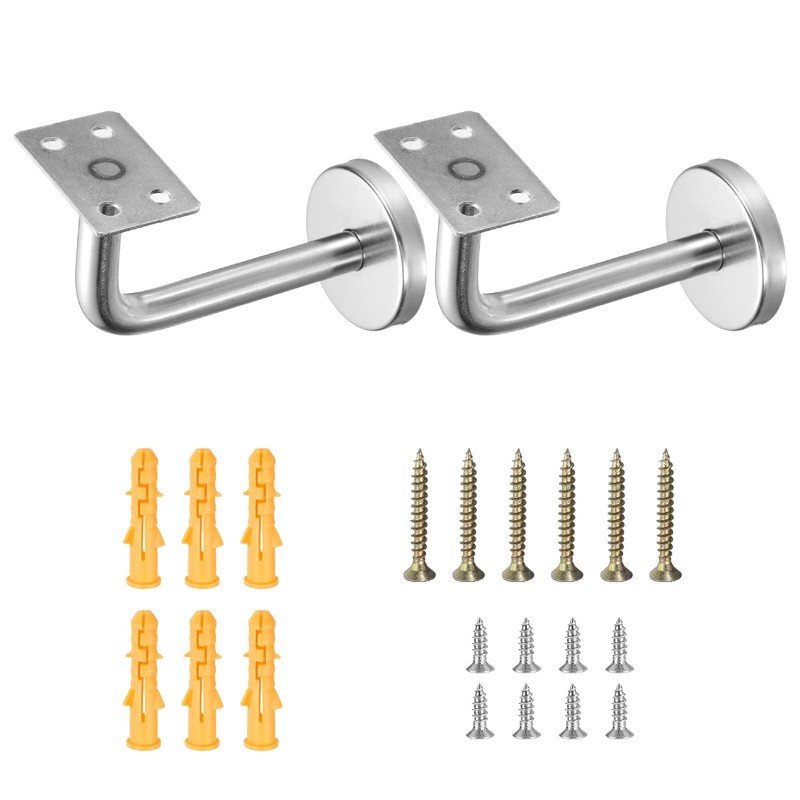 - Color: Silver; Material: Stainless Steel; Size: 6 x 10cm / 2.4 x 4"(W x H); 2Pcs x Hand Rail Brackets; Note: 1 Pcs Hand Rail Brackets Include 3Pcs expansion tubes, 3 Pcs long screws, 4 Pcs short screws