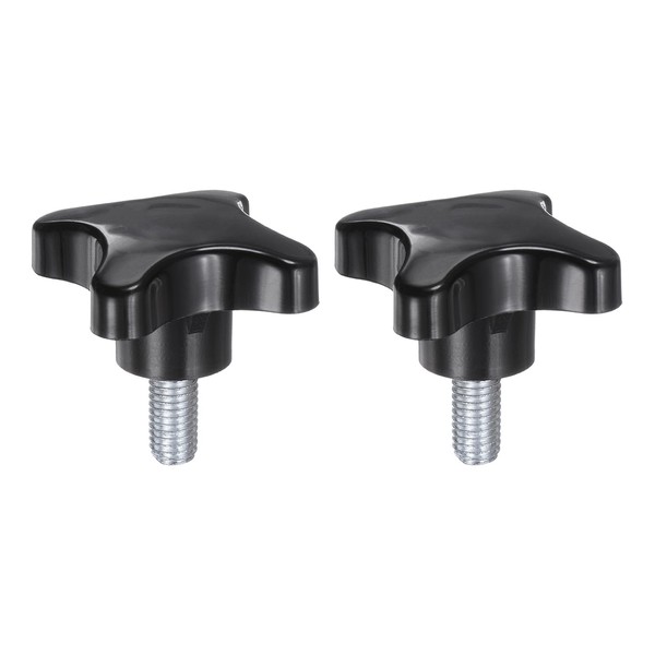 sourcing map 2pcs Star Knobs M10 x 20mm Male Thread Plastic 4-Star Stud Knob Hand Tightening Clamping Screw Replacement Threaded Handle, Black