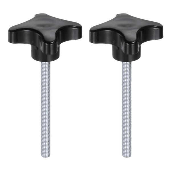 sourcing map 2pcs Star Knobs M8 x 90mm Male Thread Plastic 4-Star Stud Knob Hand Tightening Clamping Screw Replacement Threaded Handle, Black