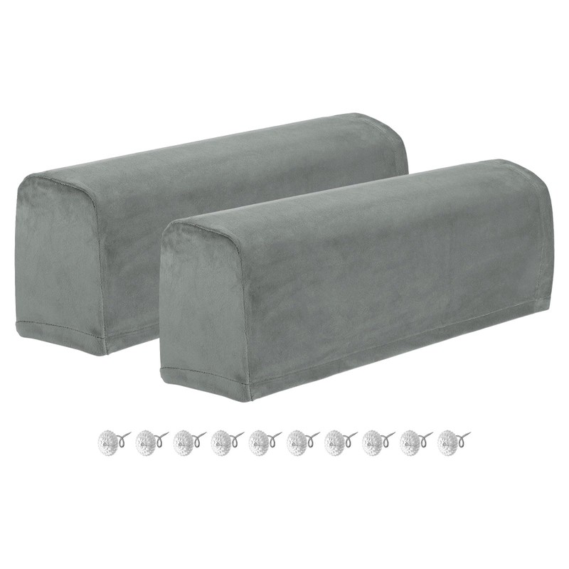 sourcing map 2Pcs Stretch Armrest Covers, Polyester Soft Couch Armchair Cover Non-Slip Chair Arm Rest Slipcovers for Sofa Recliner Twist Pins, Gray
