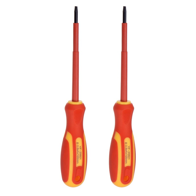 sourcing map 2pcs VDE Insulated Screwdriver 1000V SL0.8 x 4 x 100mm CR-V Magnetic Electricians Slotted Head Screwdrivers with VDE Handle