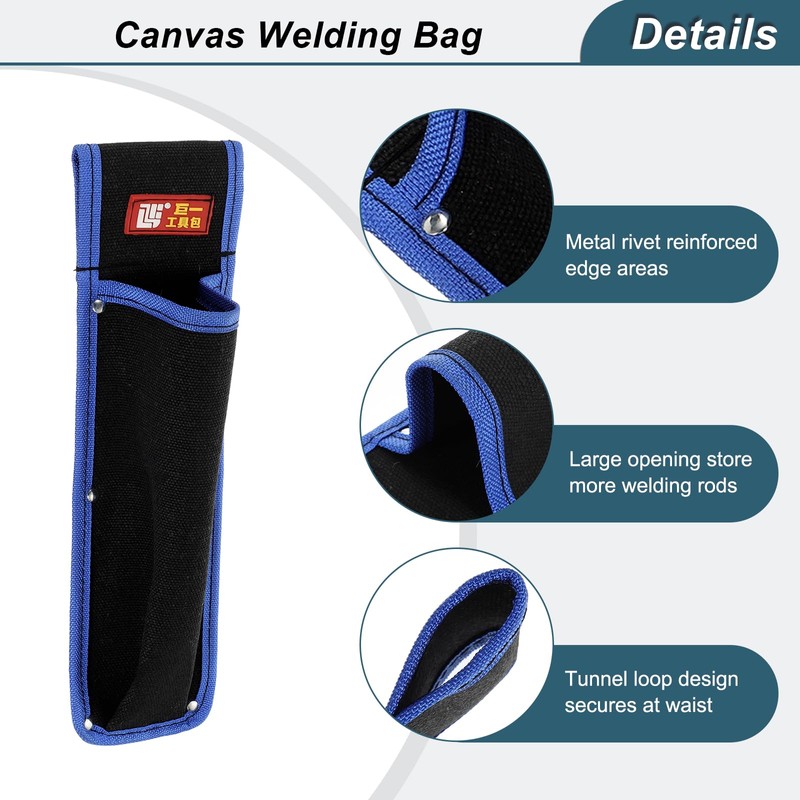 sourcing map 2pcs Welding Rod Pouch 14.57" x 3.94" x 10.24" Canvas Welding Rod Bag Leather Electrode Holder with Waist Belt Rivet Reinforcement for Storage Welding Tools, Black Blue