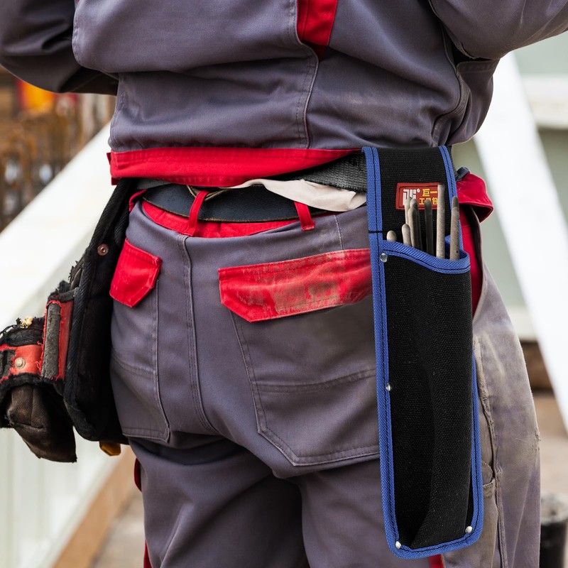 - Features - The edge area of our flame retardant electrode bag is reinforced with aluminum buckle metal rivets to ensure that it is not easy to loosen or break during use, extending the service life. And equipped with a belt, the tunnel loop-wearing design can slide over the belt and fix it at the waist, allowing you to get the electrode faster during heavy welding work.