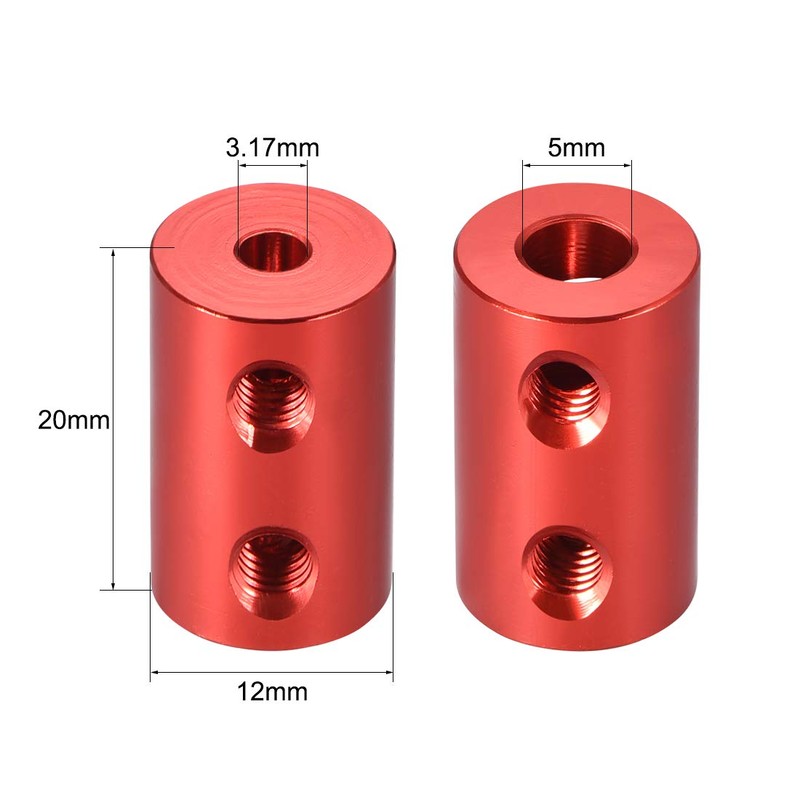 sourcing map 3.17mm to 5mm Bore Rigid Coupling Set Screw L20XD12 Aluminum Alloy,Shaft Coupler Connector,Motor Accessories,Red,2pcs