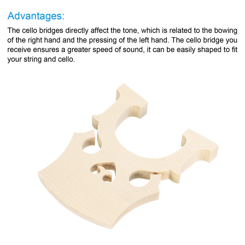 • The cello bridges directly affect the tone, which is related to the bowing of the right hand and the pressing of the left hand. The cello bridge you receive ensures a greater speed of sound, it can be easily shaped to fit your string and cello.