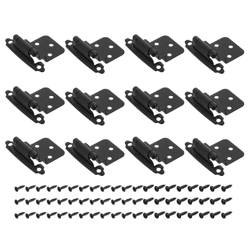 sourcing map 3/8" Cabinet Kitchen Inset Hinges, 12Pcs Self Closing Cupboard Hinges for Face Frame Kitchen Cabinet Door with Screws, Black