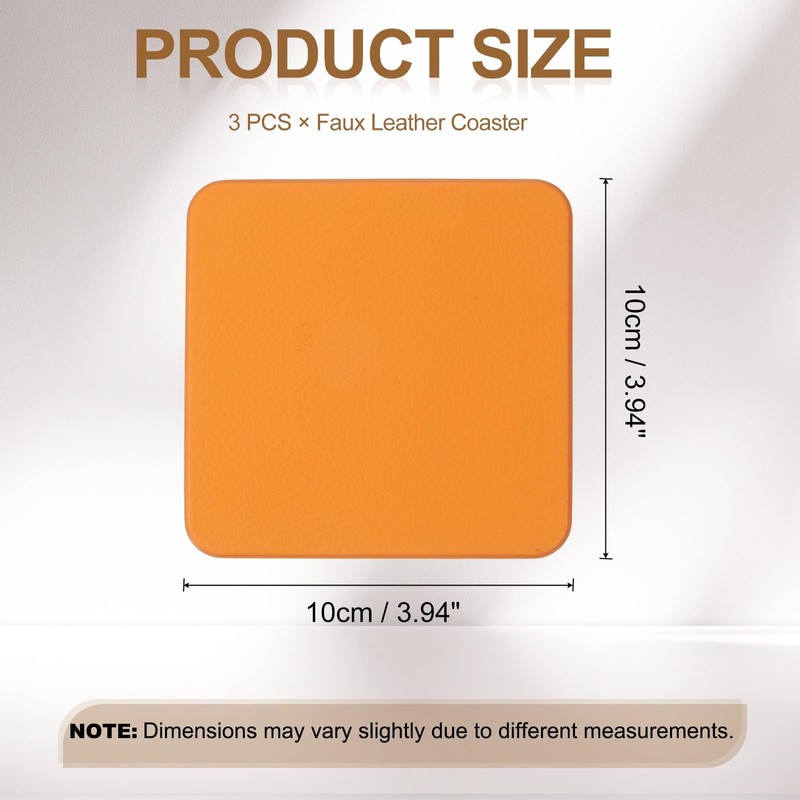 sourcing map 3 Pcs Faux Leather Coasters, 3.9 x 3.9" Square Coasters for Drinks Heat Resistant Waterproof Oil Proof Non Slip Cup Mat for Office Kitchen Bar Table Desk (Orange)